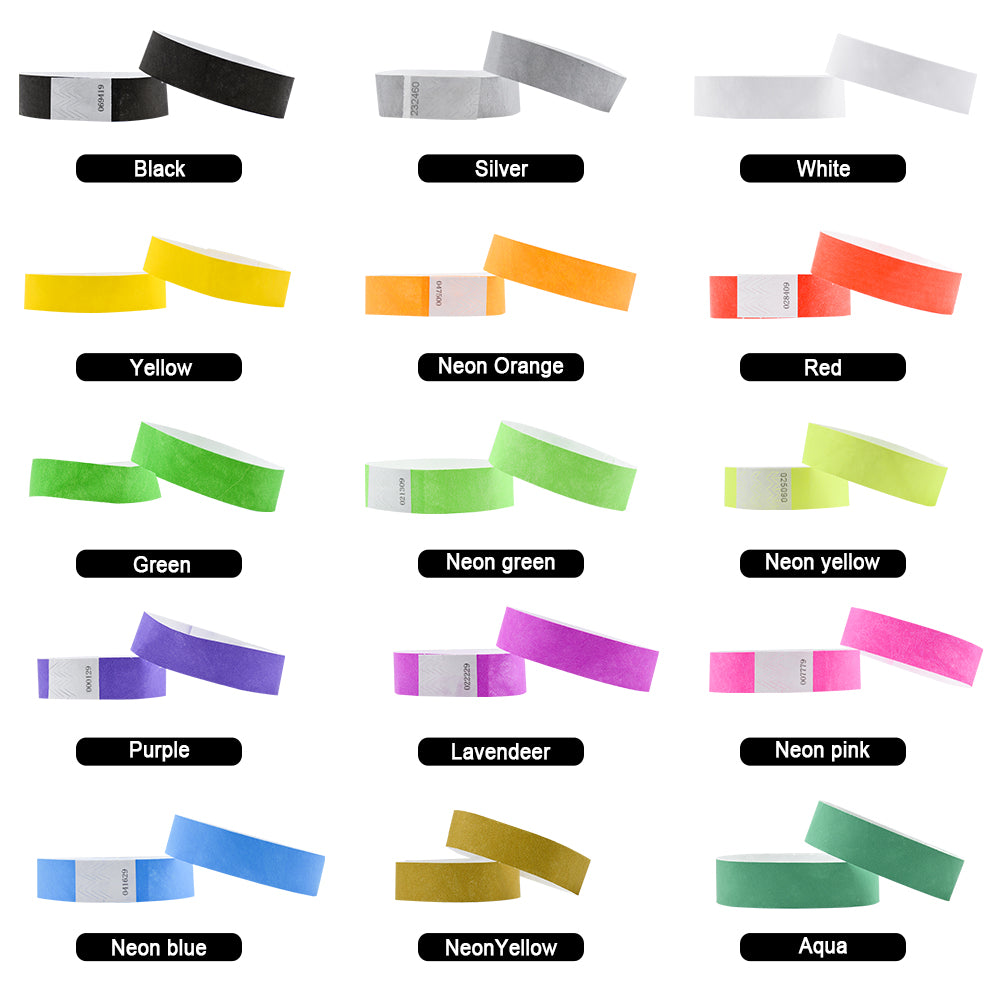 100 Pieces Cheap One Time Use Tyvek Bracelet Different Fluo Neon Colors Tyvek Paper Wristbands for Events and Wedding Party。