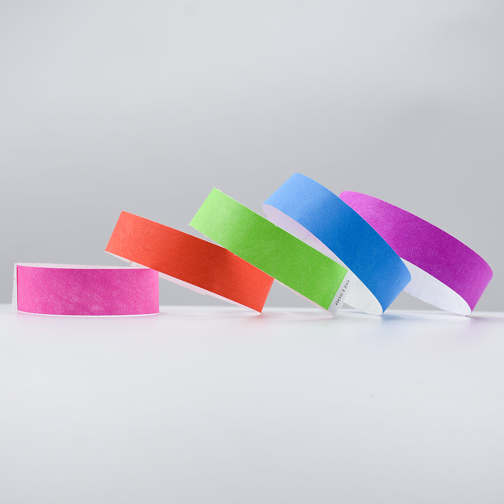100 Pieces Cheap One Time Use Tyvek Bracelet Different Fluo Neon Colors Tyvek Paper Wristbands for Events and Wedding Party。